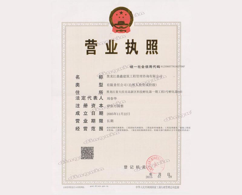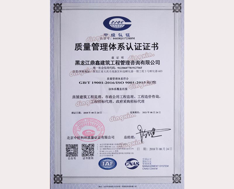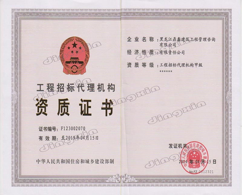 黑龍江鼎鑫建筑工程管理咨詢有限公司成立于2005年,注冊(cè)資金400萬(wàn)元。具備中華人民共和國(guó)住房和城鄉(xiāng)建設(shè)部批準(zhǔn)的工程招標(biāo)代理機(jī)構(gòu)資格、中華人民共和國(guó)財(cái)政部批準(zhǔn)的政府采購(gòu)招標(biāo)代理機(jī)構(gòu)資格、黑龍江省商務(wù)廳批準(zhǔn)的機(jī)電產(chǎn)品國(guó)際招標(biāo)代理機(jī)構(gòu)資格、中華人民共和國(guó)住房和城鄉(xiāng)建設(shè)部批準(zhǔn)的工程造價(jià)咨詢甲級(jí)資質(zhì)、黑龍江省住房和城鄉(xiāng)建設(shè)廳批準(zhǔn)的房屋建筑工程監(jiān)理乙級(jí)(市政公用工程監(jiān)理乙級(jí)資質(zhì))。主要從事建設(shè)工程及政府采購(gòu)招標(biāo)、造價(jià)咨詢、工程監(jiān)理、項(xiàng)目管理等業(yè)務(wù)。